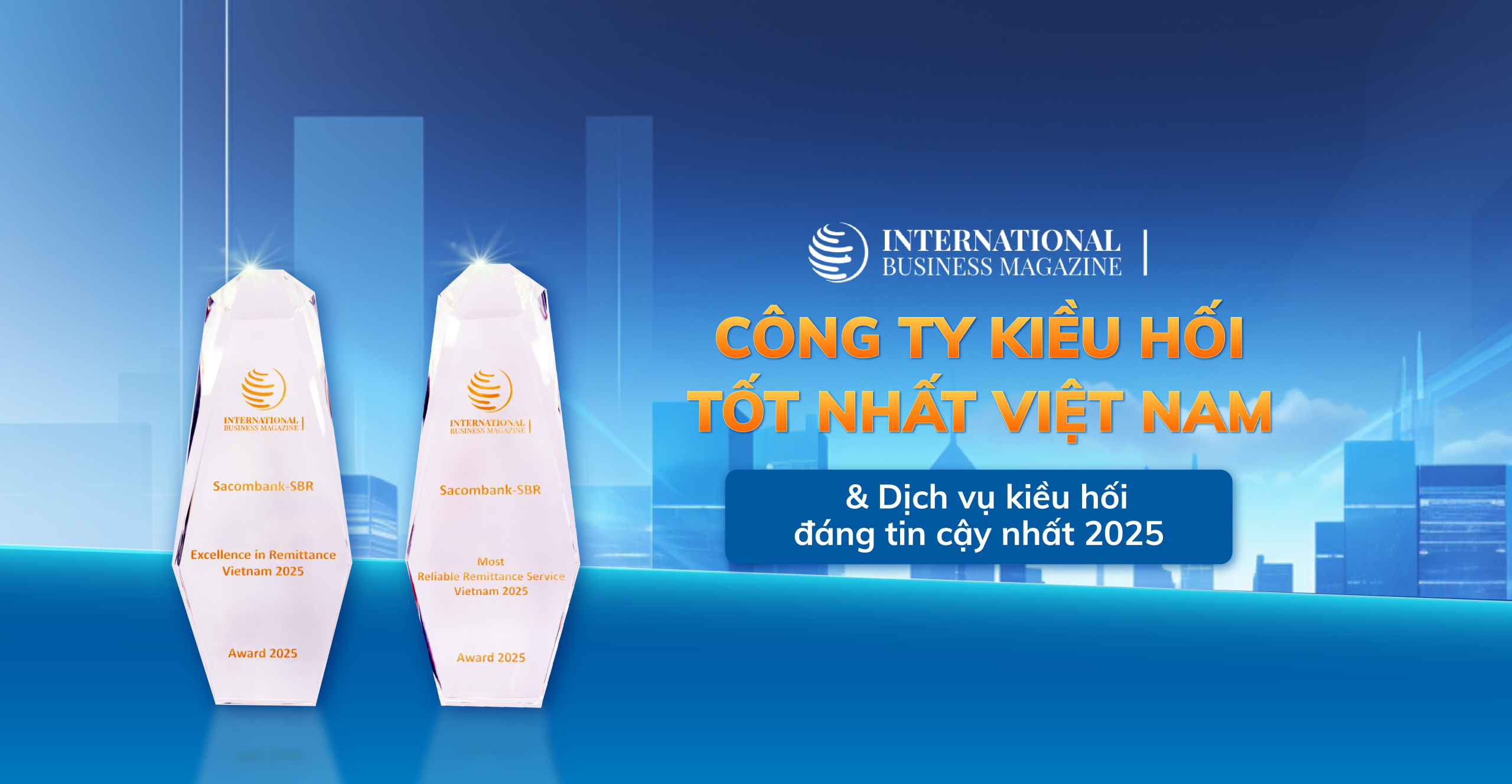 Với phương châm "Kiều hối toàn cầu - Dẫn đầu công nghệ", SACOMBANK-SBR cung cấp 5 phương thức nhận tiền: Tận nhà, Tại Quầy, Chuyển khoản, Ví điện tử và ATM. Hiện nay, SACOMBANK-SBR liên kết với nhiều Đối tác tại 5 Châu Lục trên toàn thế giới...